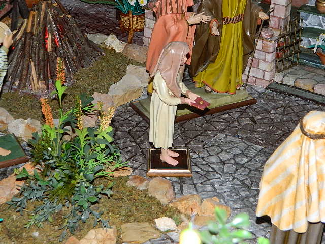 La Sinagoga di Nazareth, vicino all'ingresso Maria e Giuseppe, sposi, mano nella mano, davanti a un rabbino nel pieno delle sue funzioni. Una ragazzina ha le fedi nuziali su un cuscinetto; diversi parenti e amici degli sposi: fra cui i genitori di Maria, Sant'Anna e San Gioacchino. Nei pressi il banchetto nuziale con gli ospiti.